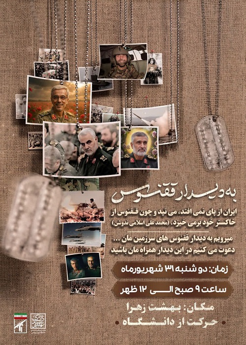 برنامه دیدار ققنوس برگزار می شود 67 بازدید print share ویژه برنامه «دیدار ققنوس» دوشنبه ۳۱ شهریور ماه 1404 در دانشگاه شهید بهشتی برگزار میشود. زمان: دوشنبه ۳۱ شهریورماه، ساعت ۹ تا ۱۲ حرکت از...
