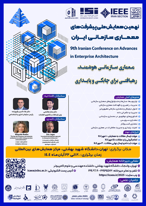 نهمین همایش معماری سازمانی هوشمند برگزار میشود 467 بازدید print share 20 آبان نهمین همایش معماری سازمانی هوشمند با شعار «معماری سازمانی هوشمند، رهیافتی برای چابکی و پایداری» با هدف رشد، توسعه دانش...
