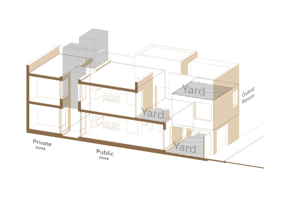 موضوع پروژه، ساخت خانه ای نو به جای خانه قدیمی(محل سکونت خانواده شعبانی) است، که زمین آن در دهه های پیشین در یکی از قطعات 235 مترمربعی در بافت توسعه یافته شهر، قواره بندی شده اند. این خانه برای سکونت دو خانواده در اقلیم گرم و نیمه مرطوب به گونه ای طراحی و ساخته شده که یادآور محیط و زمینه اش باشد. ساختار کلی پروژه با هندسه ای ساده توسط دیوارهای باربر آجری شکل می گیرد. تداوم استفاده از آجر به عنوان نماد معماری شهر دزفول در این پروژه، بارزترین نمود ارجاع به زمینه را دارد. اولین چالش پیش رو، چگونگی برخورد با تیپ رایج ساخته شده در قواره ها (تقسیم شمالی-جنوبی توده و حیاط) در حداکثر سطح اشغال مورد نیاز در زمین (75 درصد سطح اشغال طبق ضوابط منطقه) بود؛ چرا که تمام خانه های ساخته شده وضع موجود، از شدت گرما و وجود گرد و غبار فصلی، حیاط های خود را پوشانده اند و عملا استفاده از فضاهای باز و نیمه باز را بی معنی می کرد. بنابراین ایجاد سایه در حیاط ها، هم برای استفاده از فضای باز و هم به جهت پارک خودرو ها، الزامی بود.