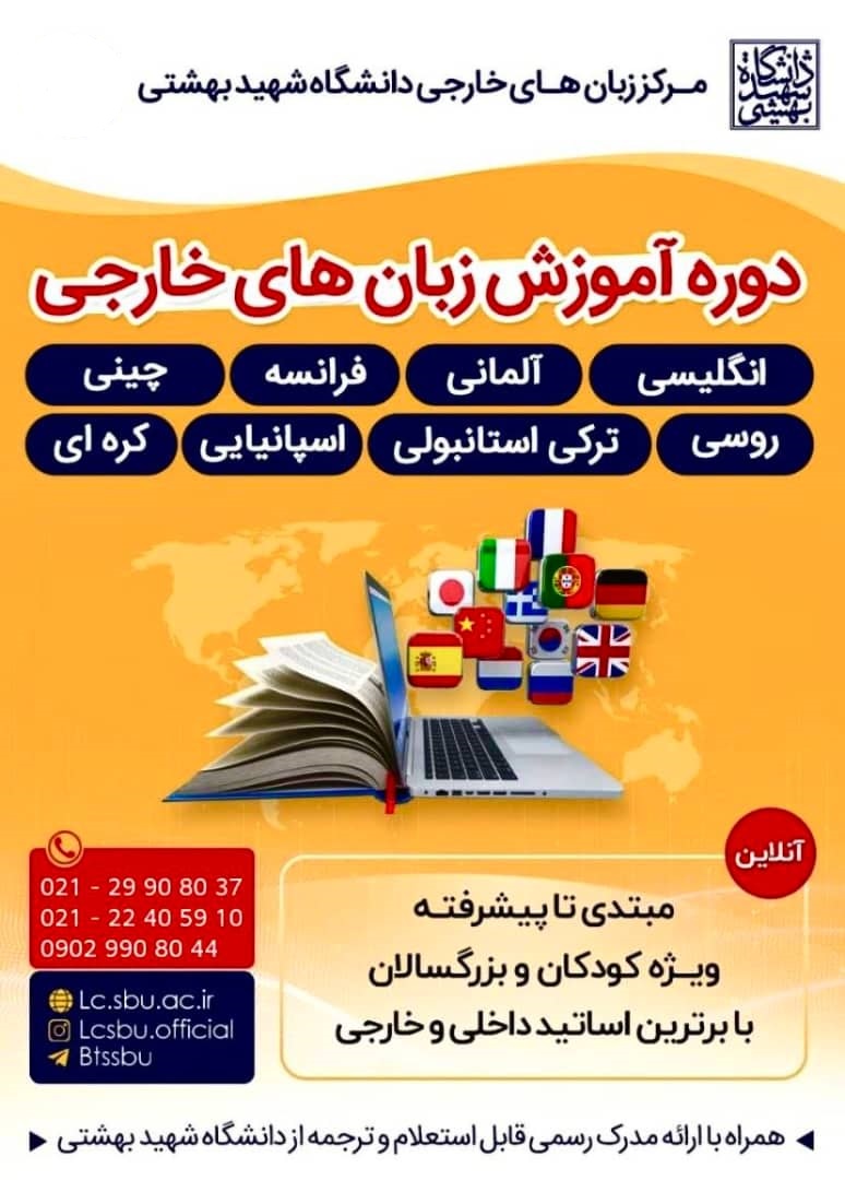 🔺 برگزاری دورههای ترمیک و فشرده زبان های خارجی به صورت آنلاین و حضوری توسط دانشگاه شهید بهشتی🔻