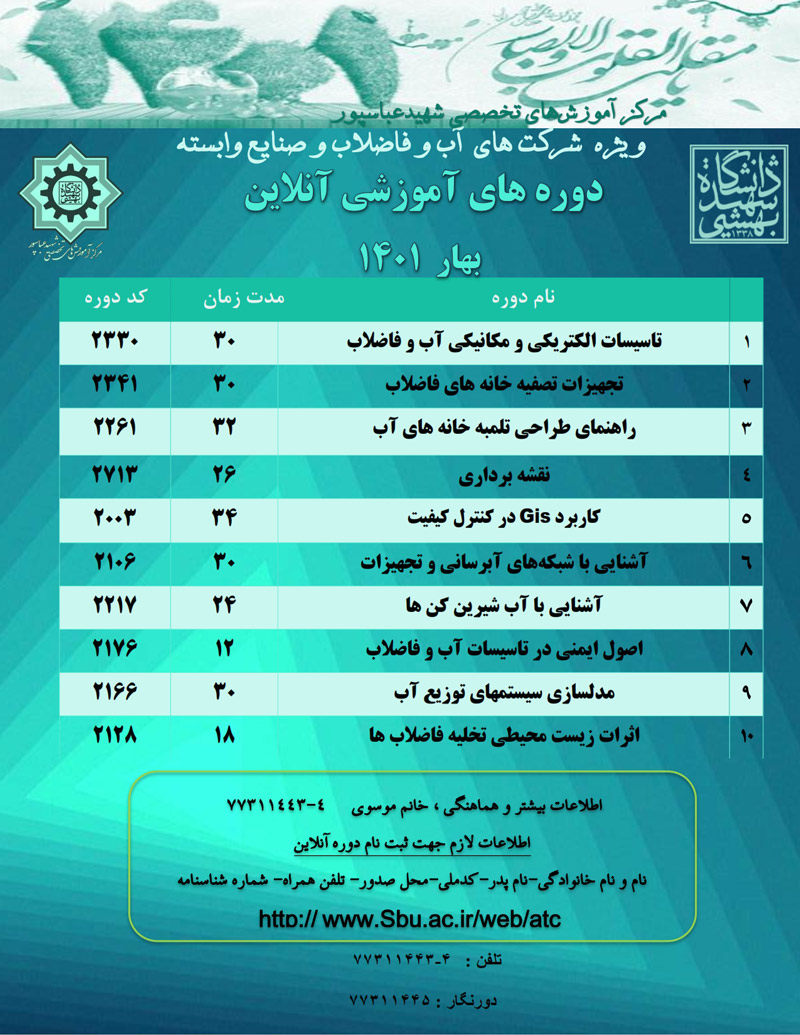 فراخوان بهار 1401 دوره های فنی تخصصی بخش آب و فاضلاب