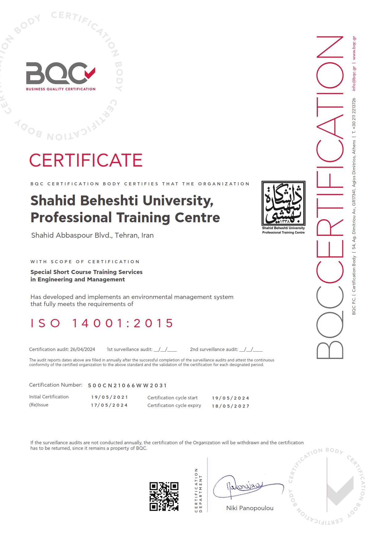 ​​​​​​​​​​​​​​​​​​​​​​گواهینامه نظام یکپارچه (IMS) مرکز آموزش‌های تخصصی ویژه دوره 1403 - 1404