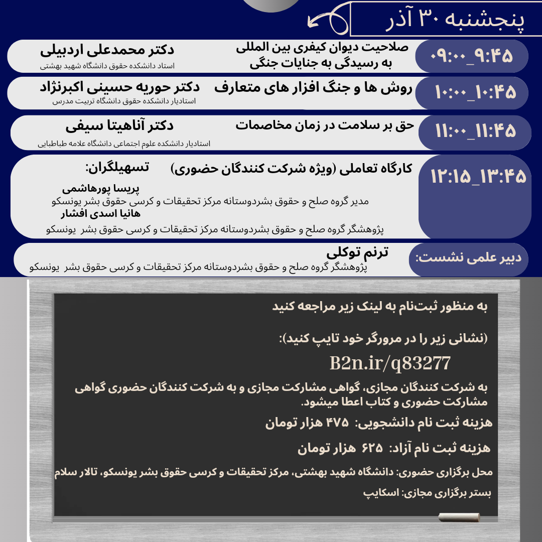مرکز تحقیقات و کرسی حقوق بشر، صلح و دموکراسی یونسکو دانشگاه شهید بهشتی برگزار میکند