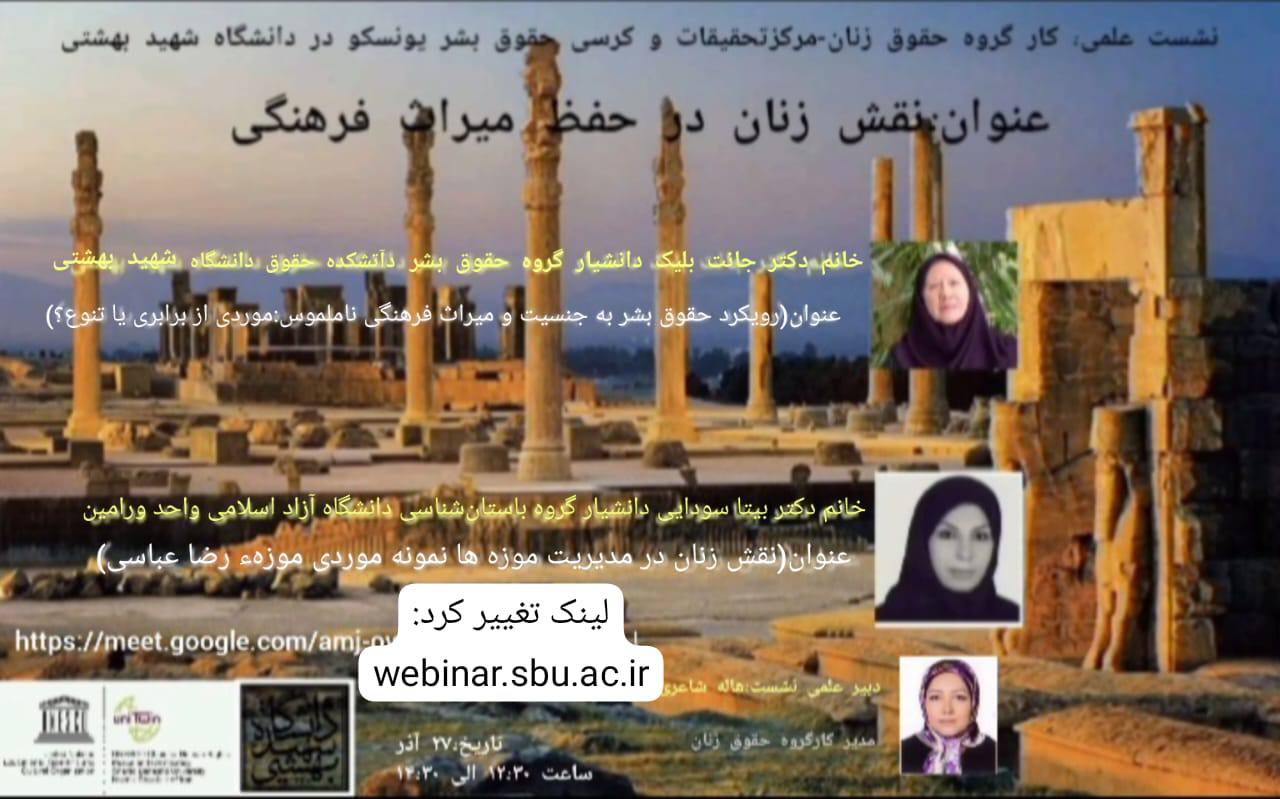 نشست وبیناری کارگروه حقوق زنان مرکز تحقیقات و کرسی حقوق بشر یونسکو در دانشگاه شهید بهشتی برگزار میکند: