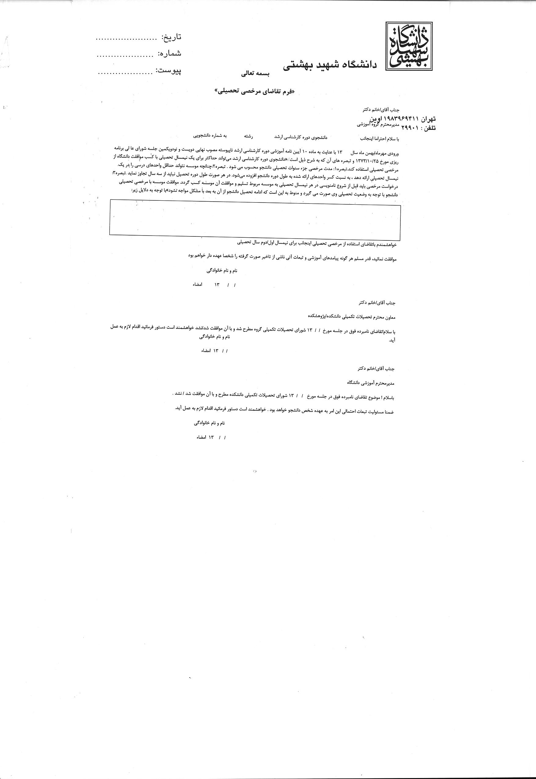 فرم تخفیف شهریه برای رتبه اول شبانه