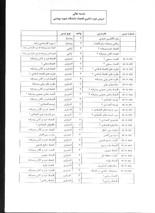 سرفصل برنامه درسی دکتری علوم اقتصادی