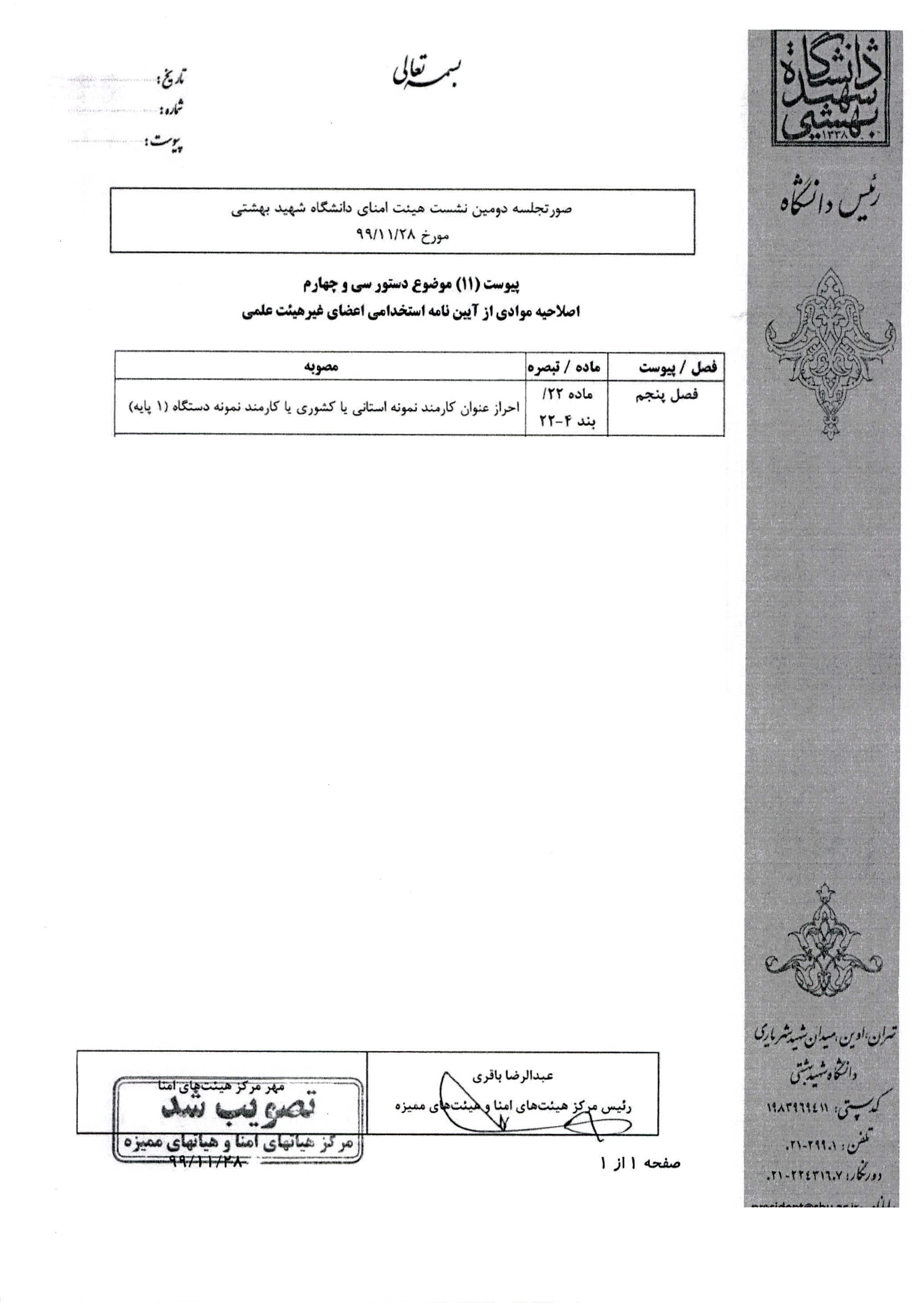 آییننامه استخدامی اعضای غیر هیاتعلمی مورخ 1397/4/27