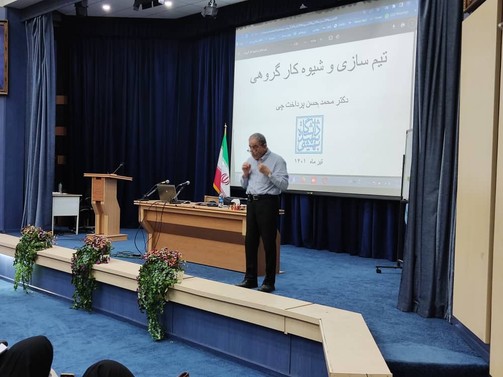 در راستای توانمندسازی و افزایش بهرهوری اعضای غیرهیات علمی دانشگاه (رسمی، پیمانی و قراردادی) در تاریخ تیرماه 1401 دوره آموزشی "تیمسازی و شیوههای کارگروهی" طی دو جلسه در محل تالار شهید بهشتی دانشکده اقتصاد و علوم سیاسی و باحضور و تدریس استاد گرانقدر جناب آقای دکتر پرداختچی برگزار گردید.