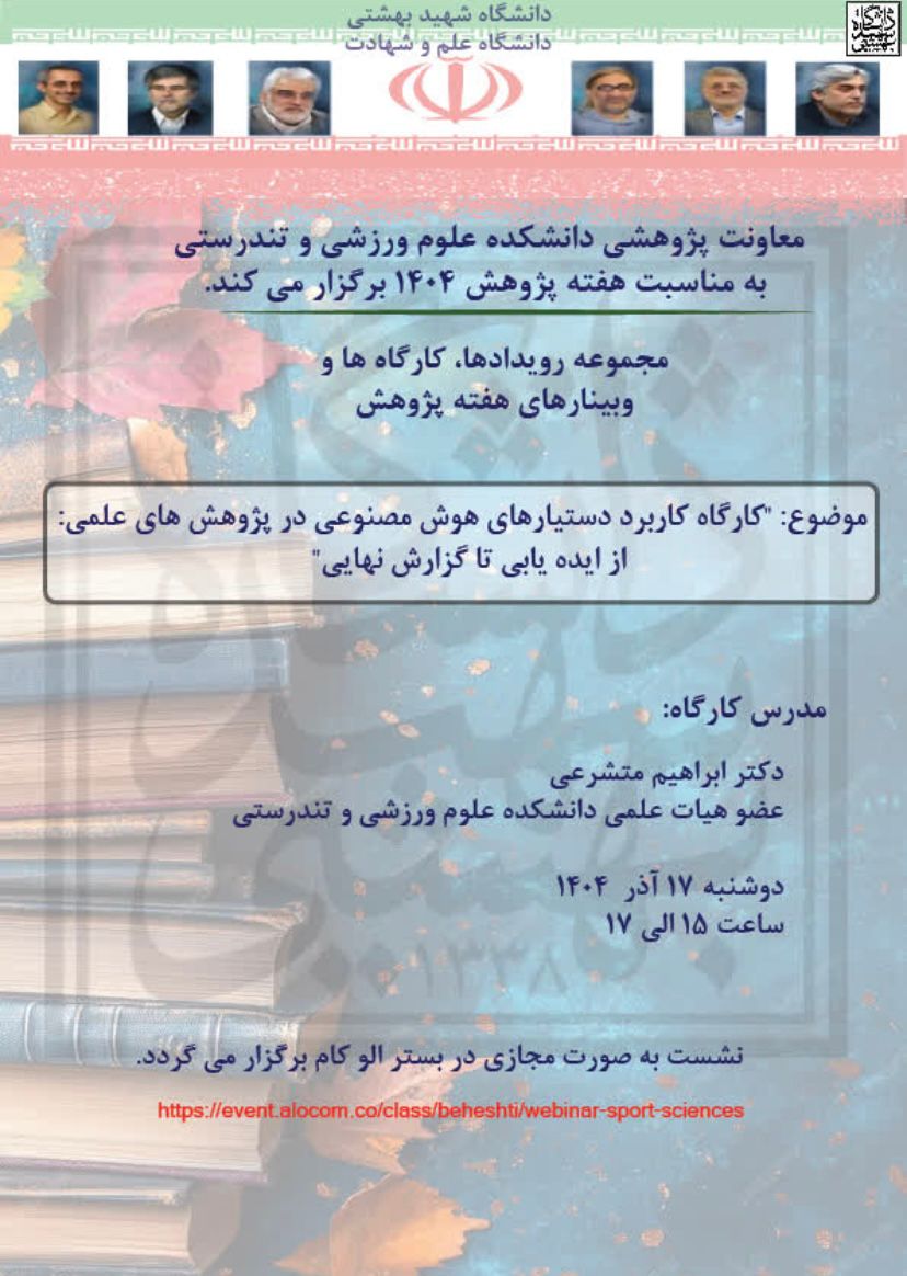 معاونت پژوهشی دانشکده علوم ورزشی و تندرستی دانشگاه شهید بهشتی به مناسبت هفته پژوهش ۱۴۰۴ برگزار می‌کند: