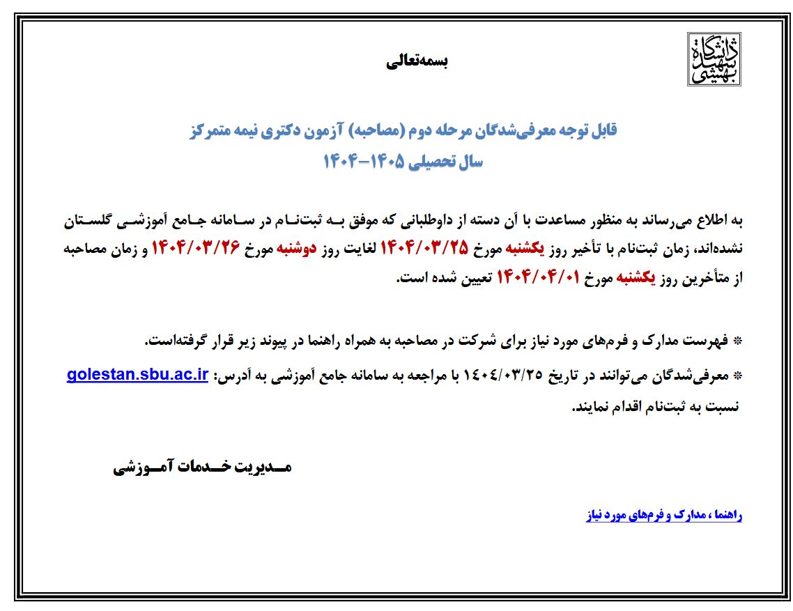 اطلاعیه مصاحبه متاخرین دوره دکتری ورودی 1404