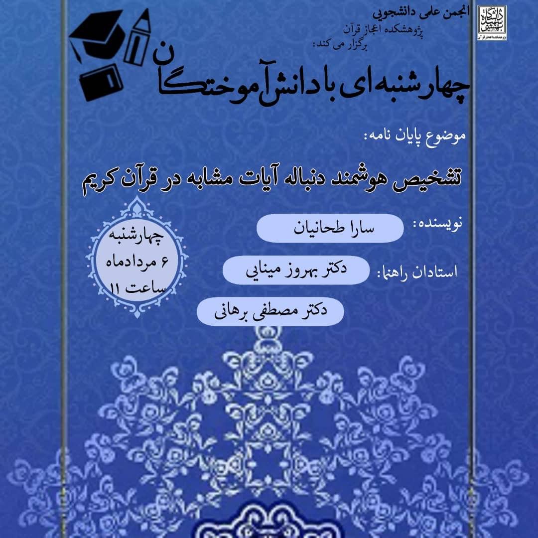 فارغ‌التحصیل کارشناسی ارشد رشته قرآن کاوی - پژوهشکده اعجاز قرآن دانشگاه شهیدبهشتی