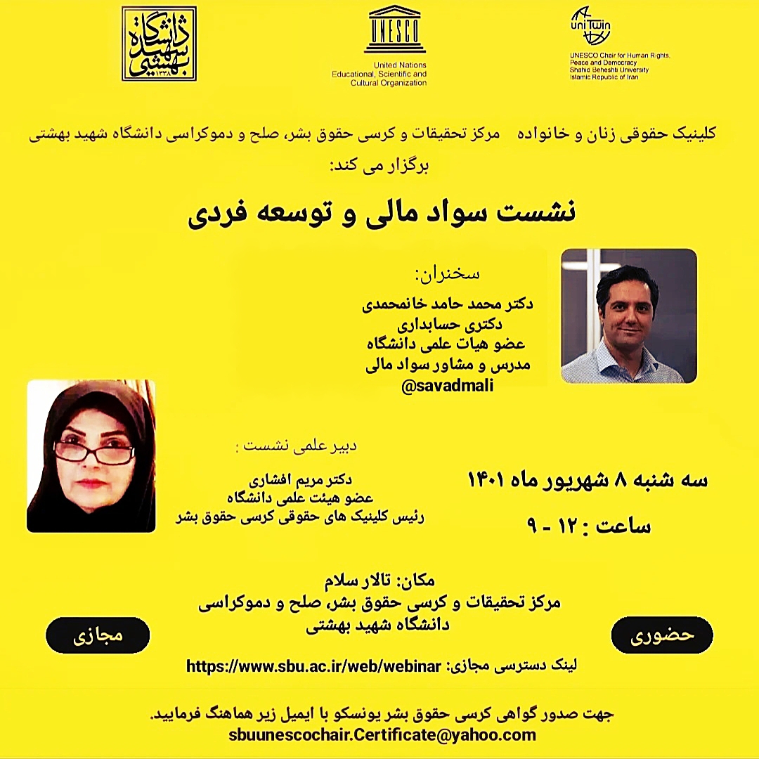 صفحه اصلی واکاوی حقوقی، اقتصادی و اجتماعی پدیده نابرابری 8207 بازدید print share کارگروه حقوق زنان مرکز تحقیقات و کرسی حقوق بشر دانشگاه شهید بهشتی تقدیم میکند: نشست علمی با موضوع: "واکاوی حقوقی،...