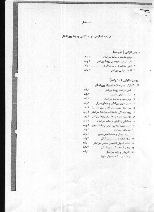 سرفصل درسهای دکتری روابط بینالملل