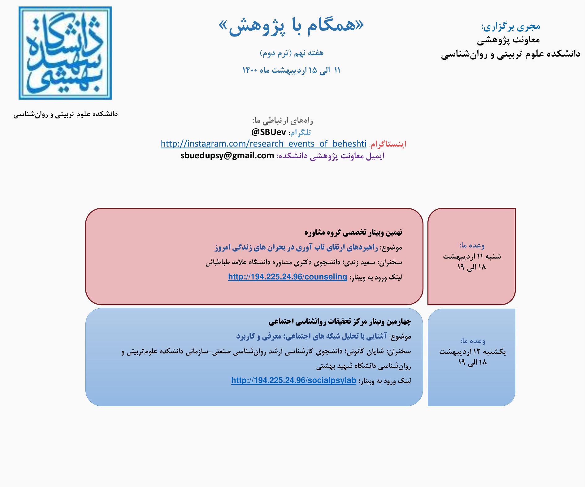 صفحه اصلی مو ضوعات فرهنگی و اجتماعی در جامعه دانشگاه شهید بهشتی 1808 بازدید print share معاونت فرهنگی و اجتماعی دانشگاه شهید بهشتی در نظر دارد تا در جهت اهداف فرهنگی و اجتماعی دانشگاه طرحهای...