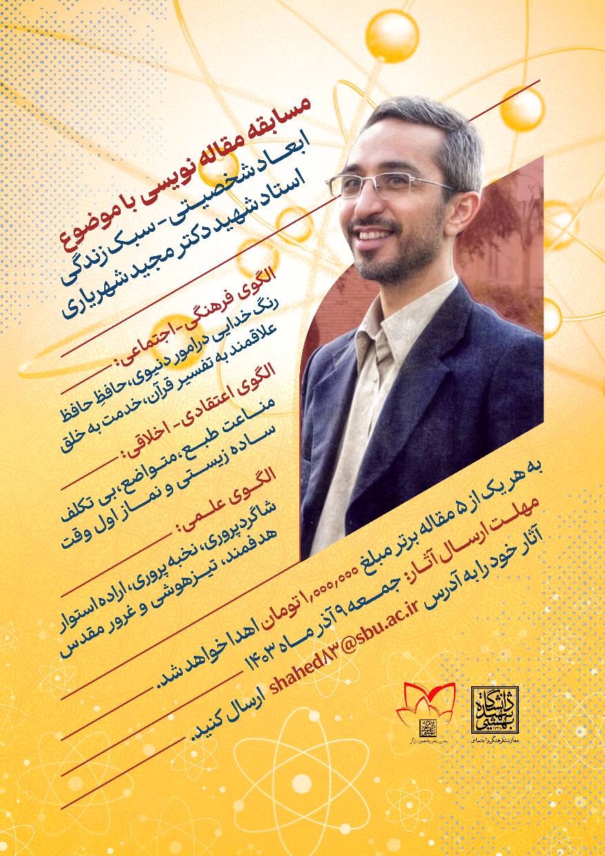 مسابقه مقاله نویسی با موضوع ابعاد شخصیتی- سبک زندگی استاد شهید دکتر مجید شهریاری