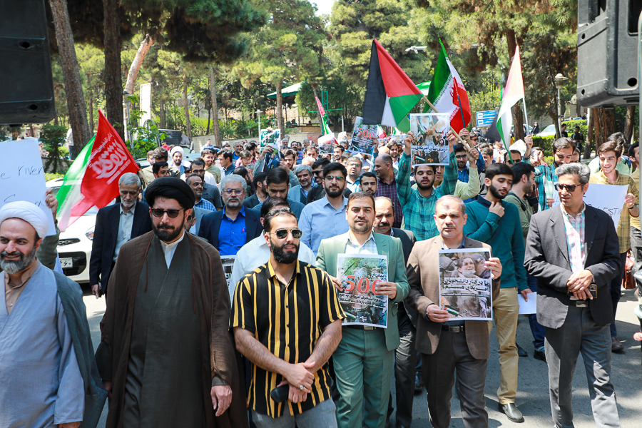 By holding a protest rally, students, faculty members and staff of SBU declared their support for the uprising of the students of American and European universities in condemning the crimes of the Zionist regime in Gaza.