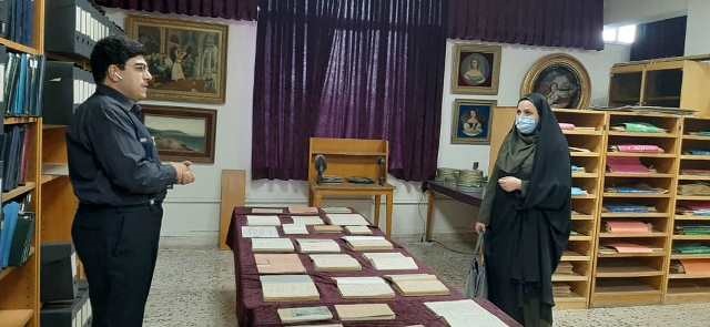 بازدید بعدی از تالار موزه کتابخانه مرکزی و مرکز اسناد صورت گرفت و رئیس کتابخانه نهاد ریاست جمهوری با ارائه توضیحاتی از سوی مسئولان مربوطه با سندها و تابلوهای نگهداری شده در این تالار آشنا شد.