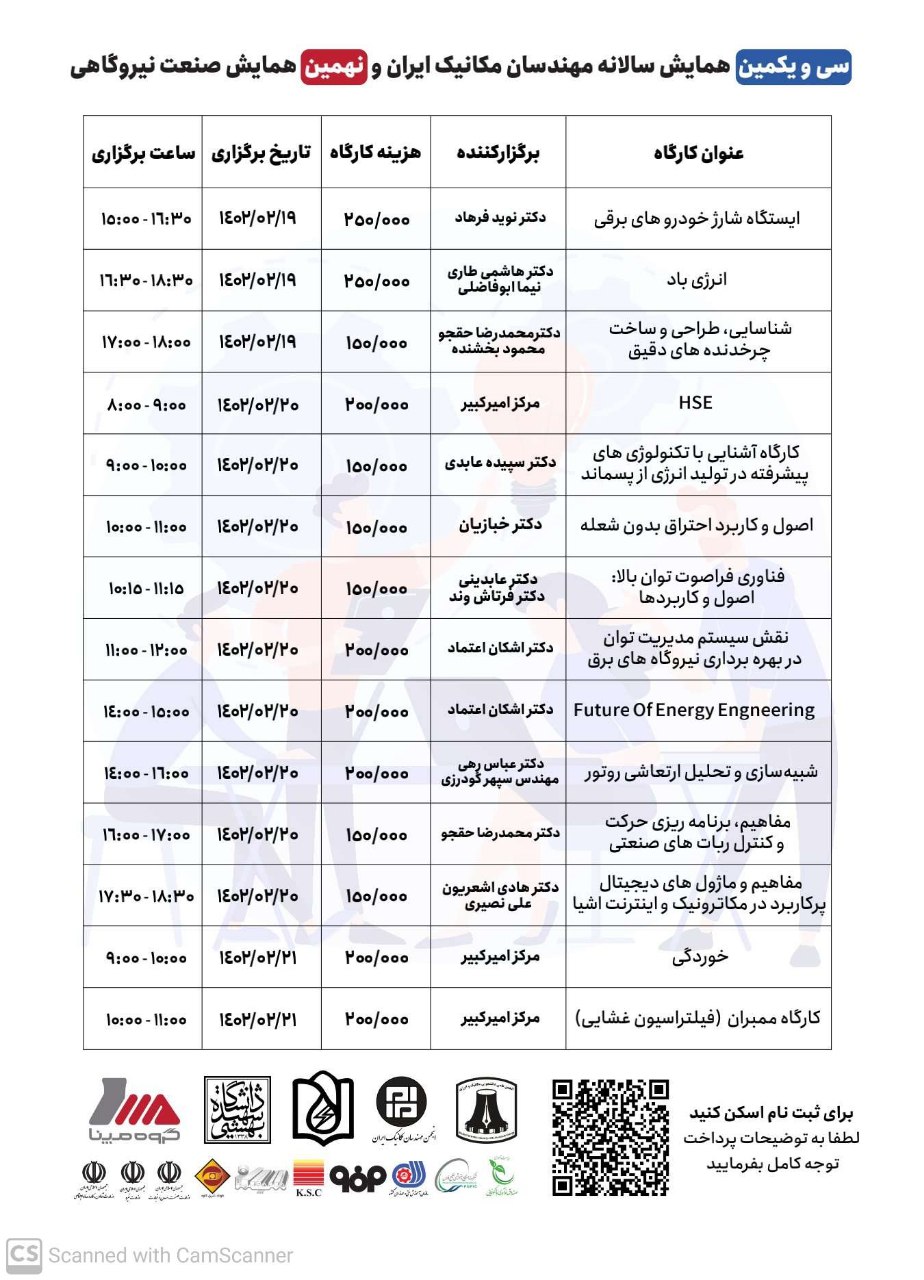 سی و یکمین همایش سالانه بینالمللی مهندسی مکانیک ایران و نهمین همایش صنعت نیروگاهی به همت دانشکده مهندسی مکانیک و انرژی دانشگاه شهید بهشتی 19 تا 21 اردیبهشت ماه 1402 برگزار میشود.