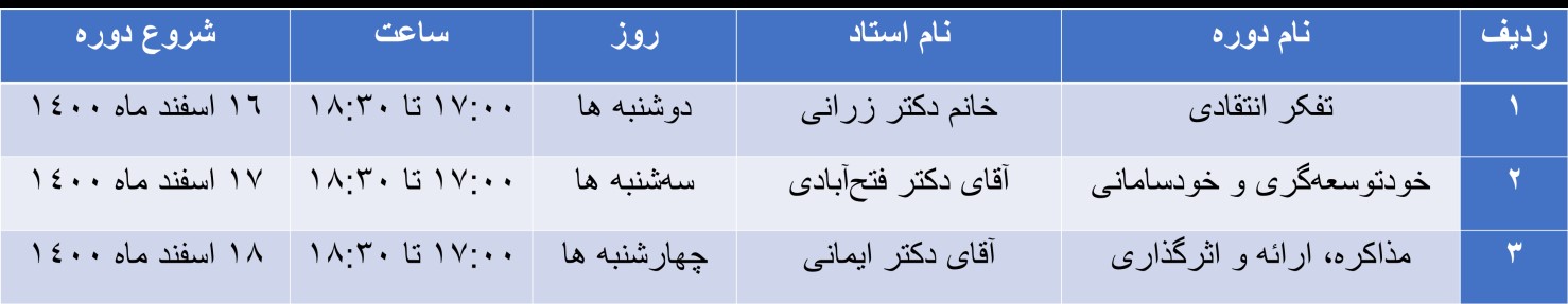 برنامه دورههای آموزشی طرح توانش - نیمسال دوم 1400-1401