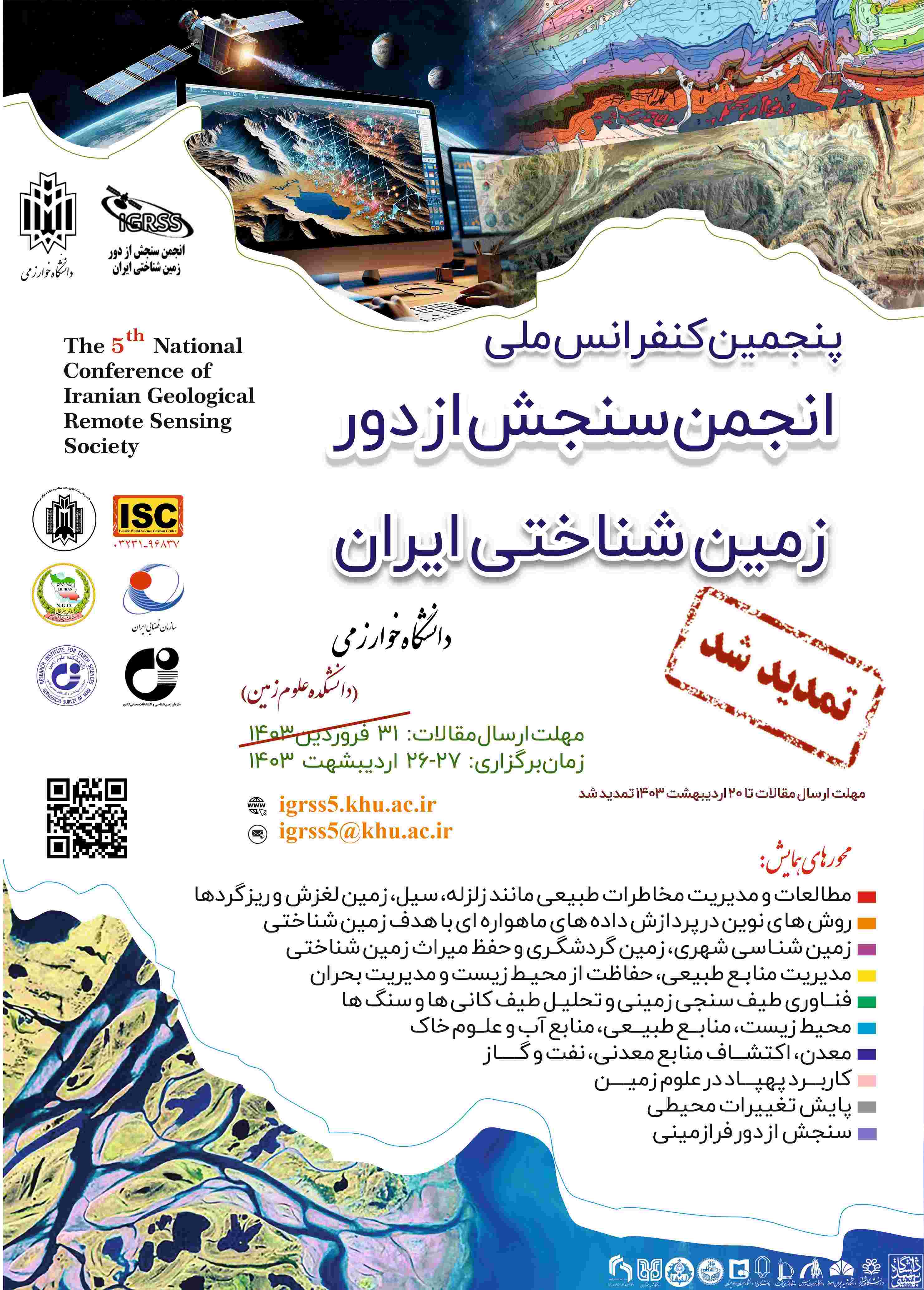 به گزارش دانشکده مهندسی آب، پنجمین کنفرانس ملی انجمن سنجش از دور زمین شناختی ایران به میزبانی دانشگاه خوارزمی در تاریخ ۲۶ و ۲۷ اردیبهشت ۱۴۰۳ به صورت حضوری در پردیس کرج این دانشگاه برگزار میگردد.