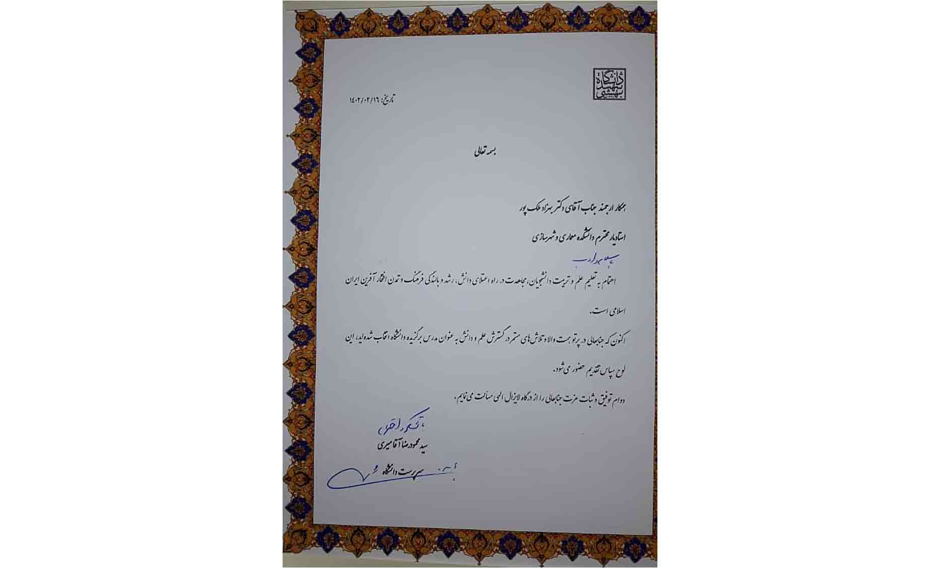 تقدیر از اساتید دانشکده معماری و شهرسازی در جشنواره آموزش سال 1402