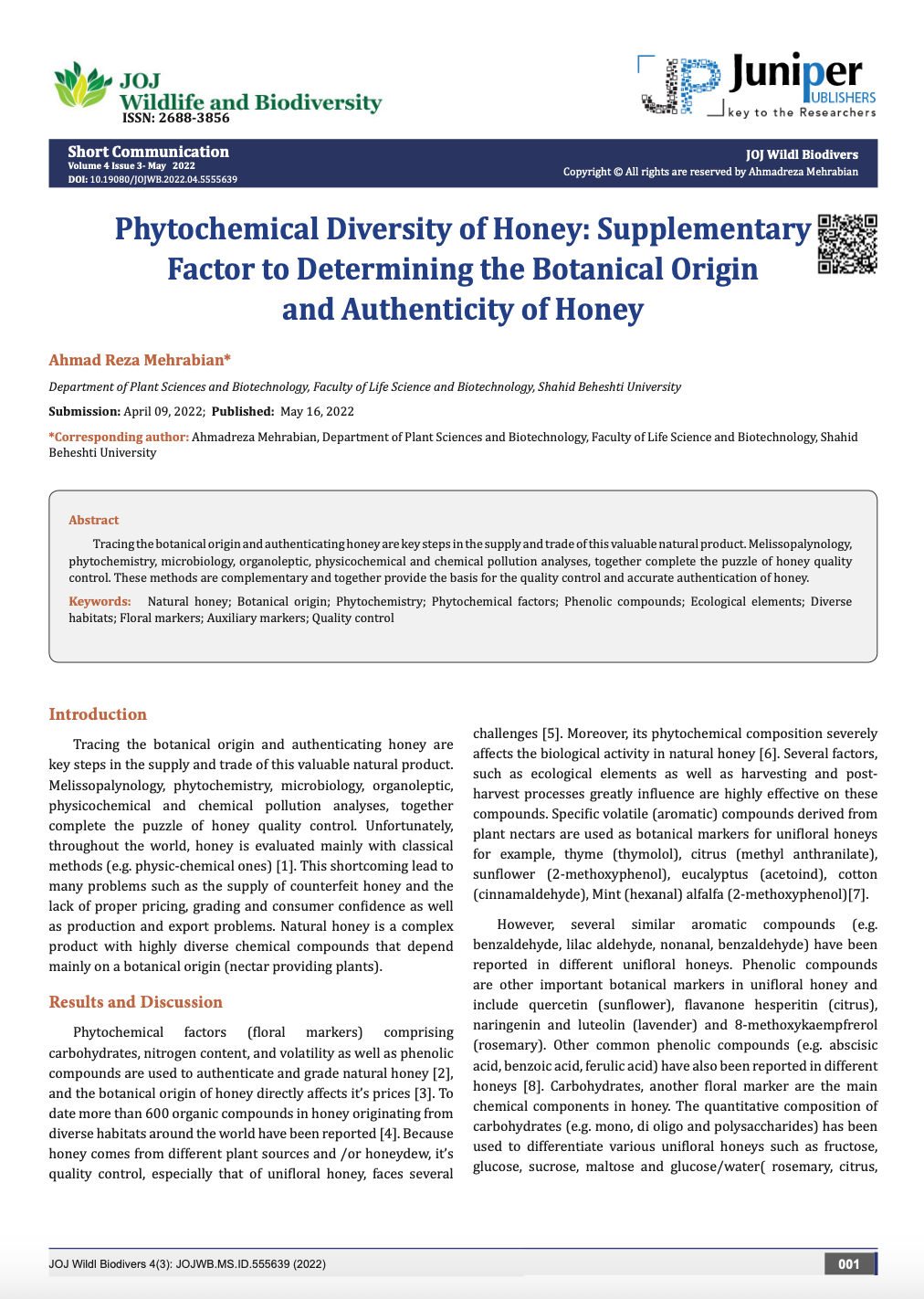 Assessing the quality of bee honey on the basis of melissopalynology as well as chemical analysis