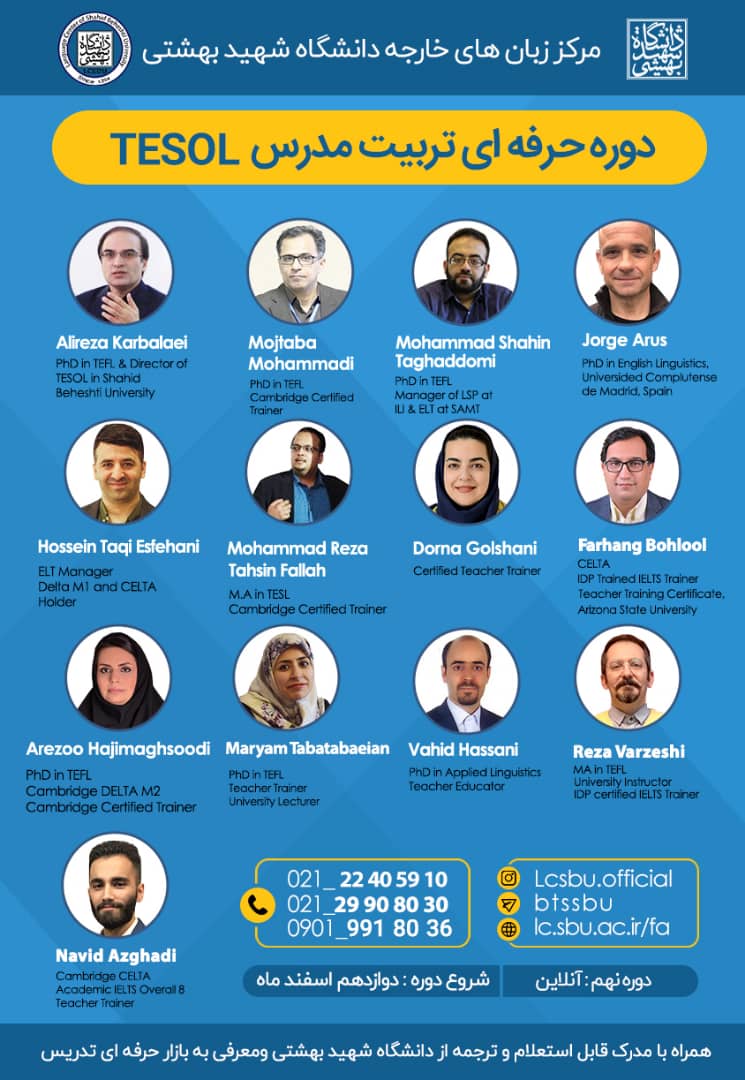 🔺 برگزاری هشتمین دوره حرفه ای تربیت مدرس TESOL به صورت آنلاین توسط دانشگاه شهیدبهشتی 🔻