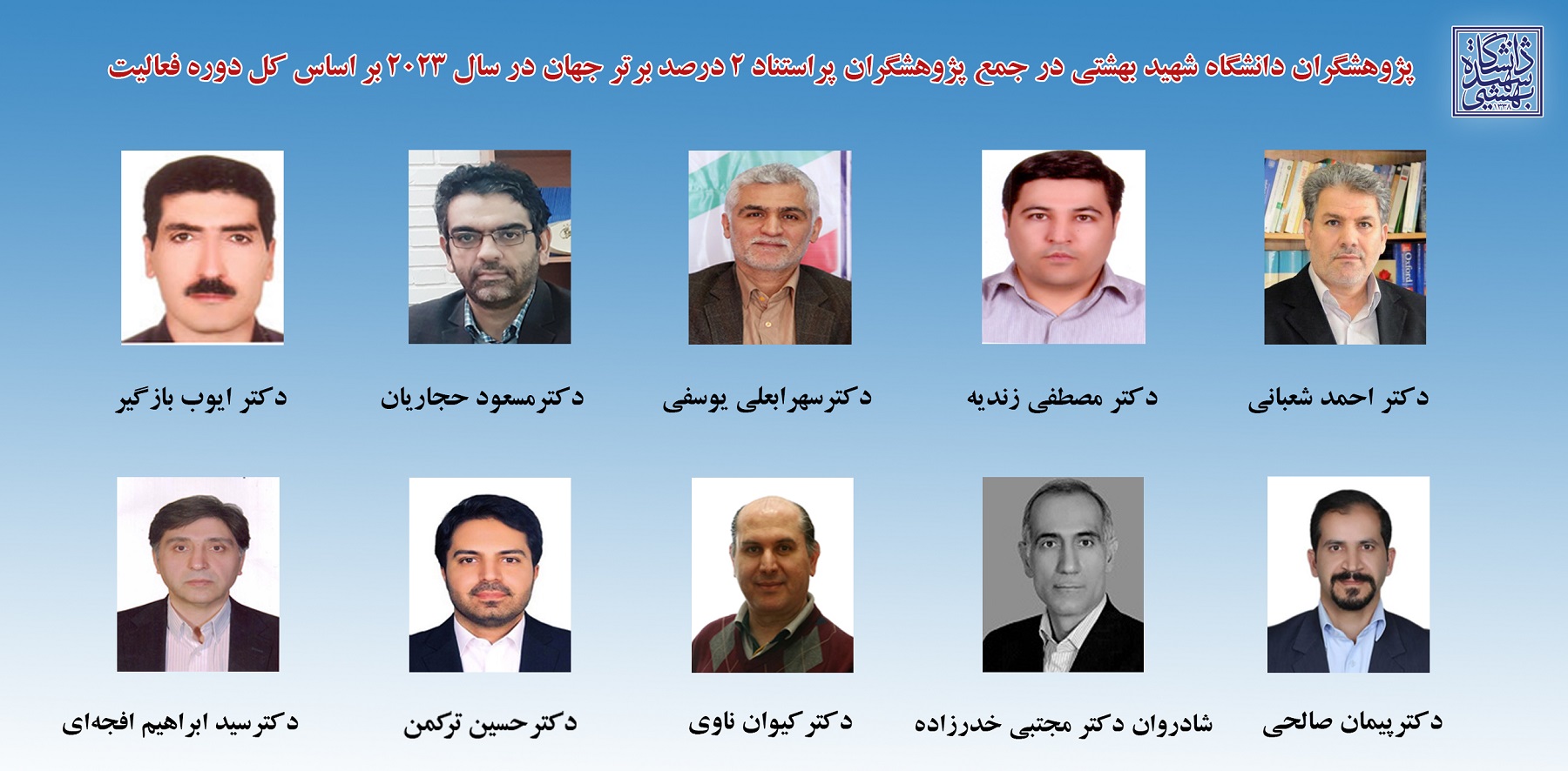 براساس اعلام معاونت پژوهشی و فناوری دانشگاه شهید بهشتی؛ لیست دانشمندان جهان به عنوان دو درصد پر استناد جهان در سال 2023 براساس ارزیابی‌های انجام ‌شده در دانشگاه استنفورد بر مبنای شاخص‌های شناخته شده و اطلاعات مندرج در اسکوپوس معرفی شدند. این دانشمندان براساس میزان استناد به مقالات علمی معتبر منتشر شده تا پایان سال 2022 معرفی شده‌اند. این فهرست، عملکرد استنادی نویسندگان را از لحاظ نمره شاخص استنادی مرکب آنان در بازه زمانی 1960 تا 2022 در 22 حوزه موضوعی اصلی و 174 حوزه فرعی تحلیل کرده و بر این اساس نویسندگانی را که در زمره پژوهشگران پراستناد دو درصد برتر جهان قرار گرفته‌اند، به تفکیک در دو «فهرست 2 درصد دانشمندان پر استناد بر اساس عملکرد کل مدت خدمت» و «فهرست 2 درصد دانشمندان پر استناد بر اساس عملکرد آخرین سال (2022)» معرفی کرده است.