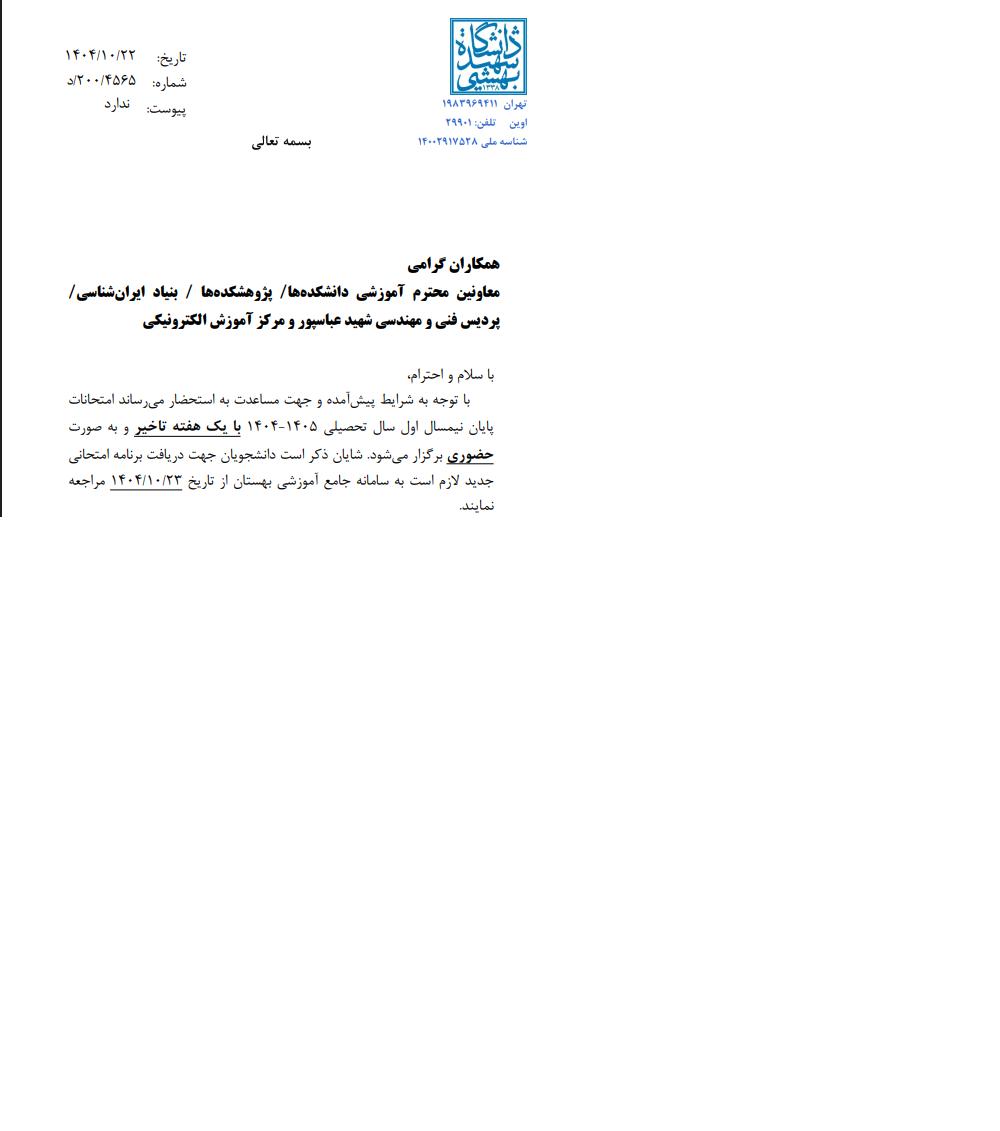 درخصوص تعویق امتحانات نیمسال اول 1405-1404