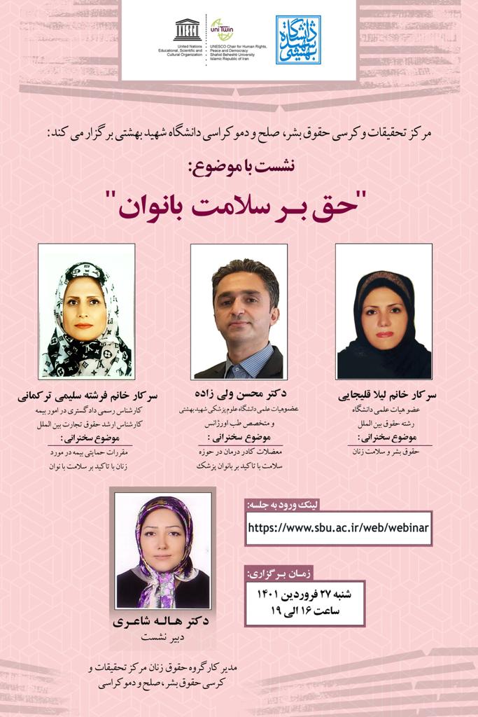 کارگروه زنان مرکز تحقیقات و کرسی حقوق بشر، صلح و دموکراسی دانشگاه شهید بهشتی برگزار می کند: