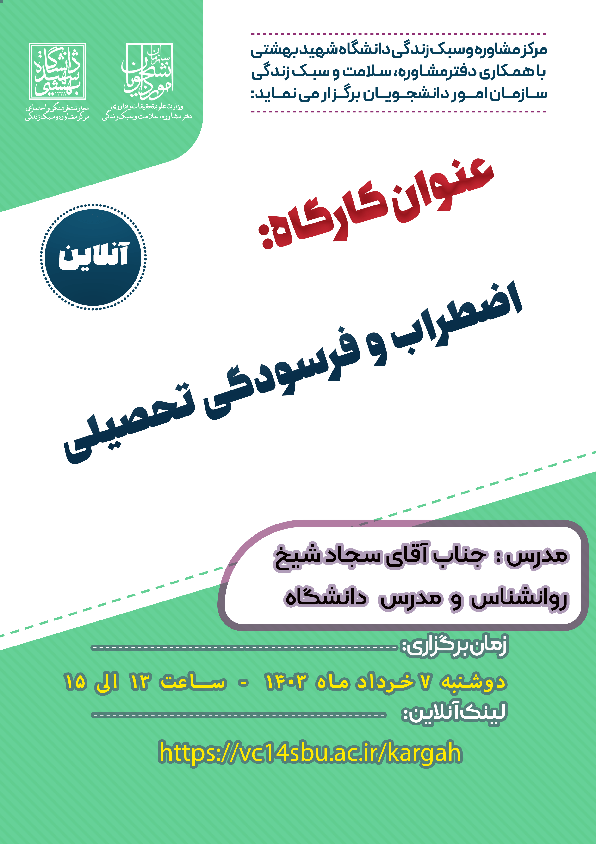 کارگاه مجازی اضطراب و فرسودگی تحصیلی ویژه ایام امتحانات با حضور جناب آقای سجاد شیخ روانشناس و مدرس برگزار گردید.