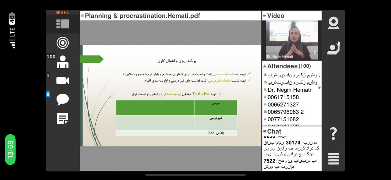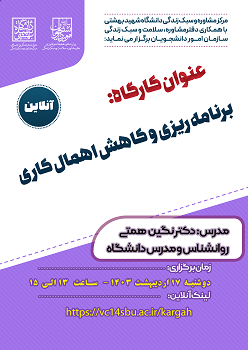 کارگاه مجازی برنامه ریزی و کاهش اهمال کاری در تاریخ 17 اردیبهشت ماه 1403 با حضور سرکار خانم دکتر نگین همتی روانشناس و مدرس دانشگاه برگزار گردید.