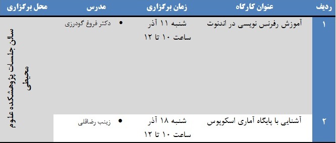 لیست کارگاه های آموزشی پژوهشکده علوم محیطی به مناسبت هفته پژوهش