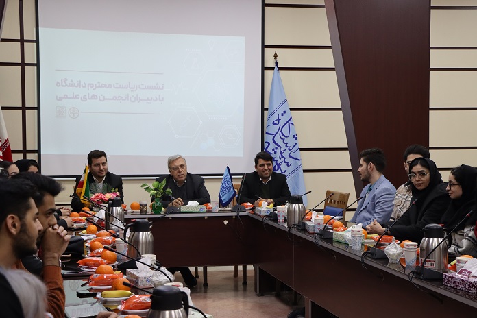 پس از آن، دکتر حمیدی، معاون پژوهشی و فناوری دانشگاه در ادامه گفتگو با دبیران انجمن های علمی، استفاده از ظرفیت های این انجمن ها برای ارتباط با صنعت و تولید و ساخت محصولات در این بستر علمی را امری ضروری دانست و از دانشجویان خواست تا در امور علمی و پژوهشی با این معاونت همکاری های لازم را داشته باشند و با ایده های مبتکرانه و جدید خود به پیشبرد اهداف علمی و بالا بردن جایگاه علمی دانشگاه کمک کنند.