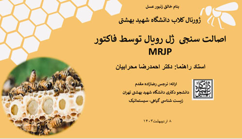 ارائه علمی خانم نرجس رضازاده دانشجوی دکتری سیستماتیک اکولوژی گیاهی دانشکده علوم زیستی با موضوع اصالت سنجی ژل رویال توسط فاکتور MRJP به راهنمایی آقای دکتر احمدرضا محرابیان در تاریخ 1403/2/8،ساعت 8 صبح در آمفی تئاتر دانشکده علوم و فناوری زیستی برگزار شد.