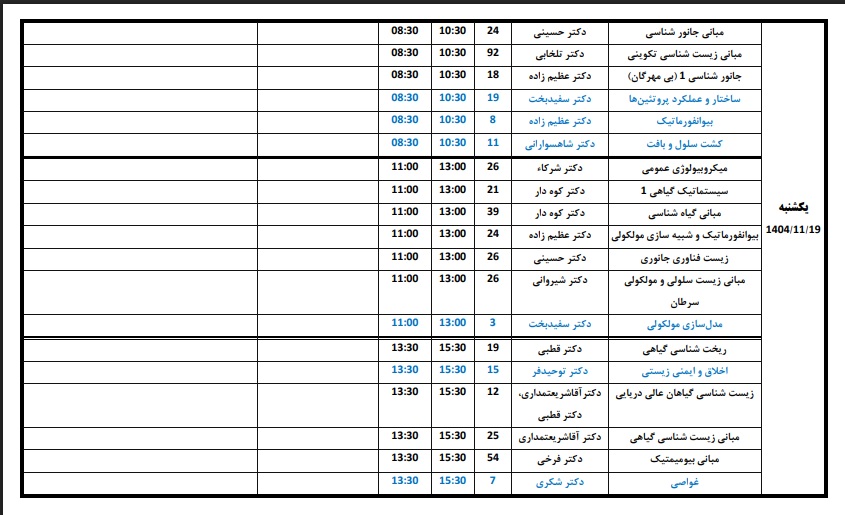 برنامه امتحانی مقطع کارشناسی روز یکشنبه 19 بهمن