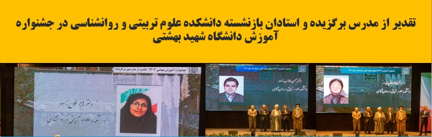 در این جشنواره دکتر هاجر فلاح زاده از گروه مشاوره به عنوان مدرس برگزیده دانشکده علوم تربیتی و روانشناسی معرفی شد. همچنین از اساتیدبازنشسته دانشکده دکتر محسن طالب زاده و دکتر فاطمه باقریان تقدیر شد.