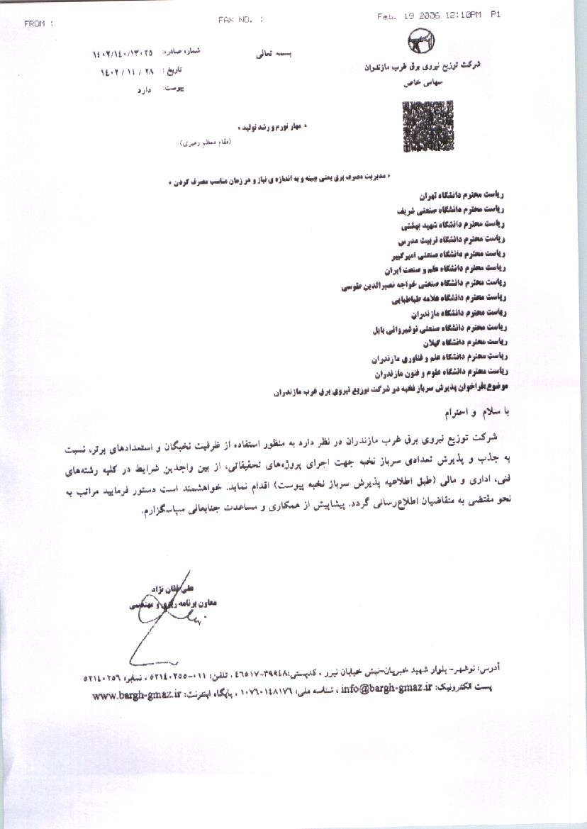 فراخوان پذیرش سرباز نخبه در شرکت توزیع نیروی برق غرب مازندران