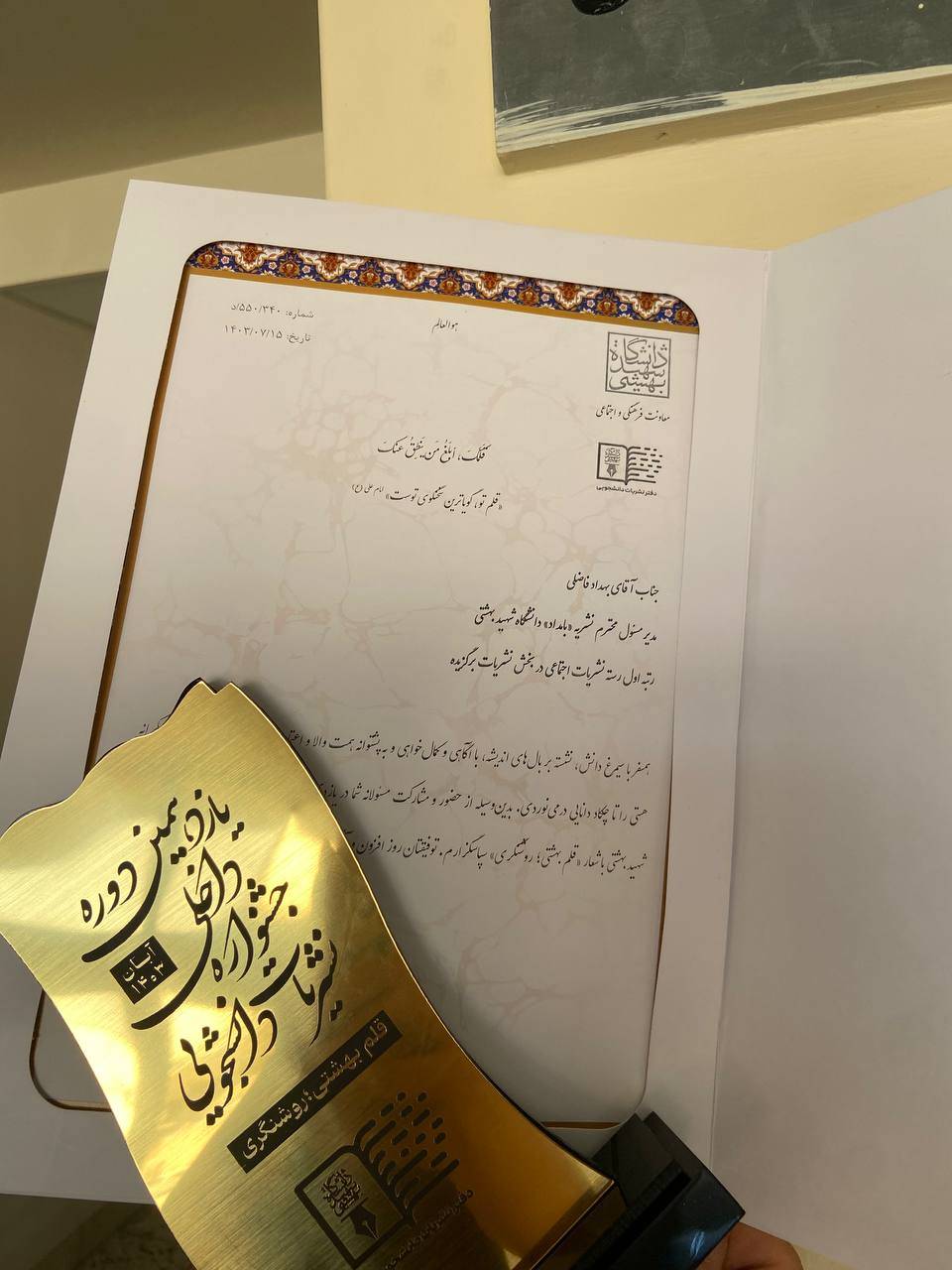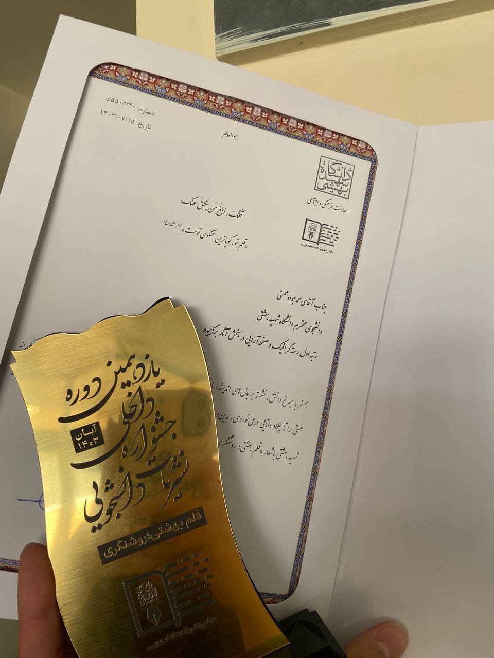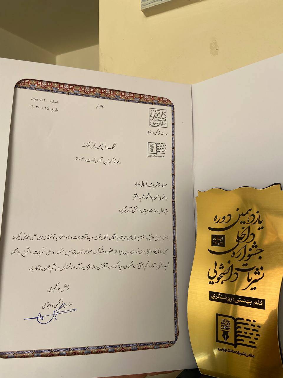 درخشش نشریه بامداد (انجمن دانشجويي جامعه شناسي) در جشنواره داخلی نشریات دانشجویی دانشگاه شهید بهشتی