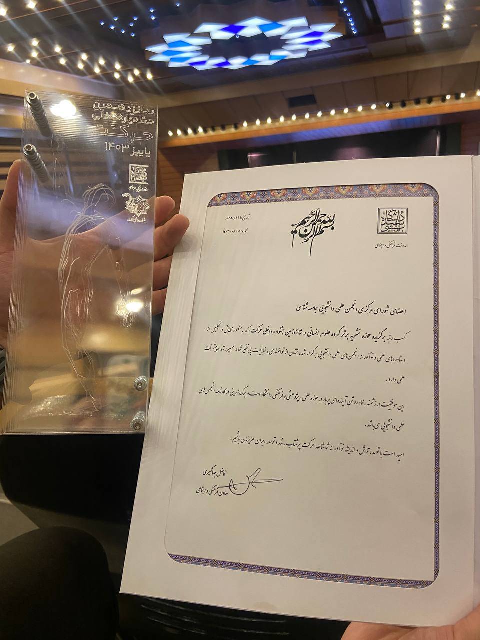 همچنین، نشریه بامداد موفق به کسب عنوان نشریه برگزیده در جشنواره حرکت داخلی شد و بهعنوان نماینده دانشگاه شهید بهشتی راهی جشنواره حرکت در سطح ملي شد.