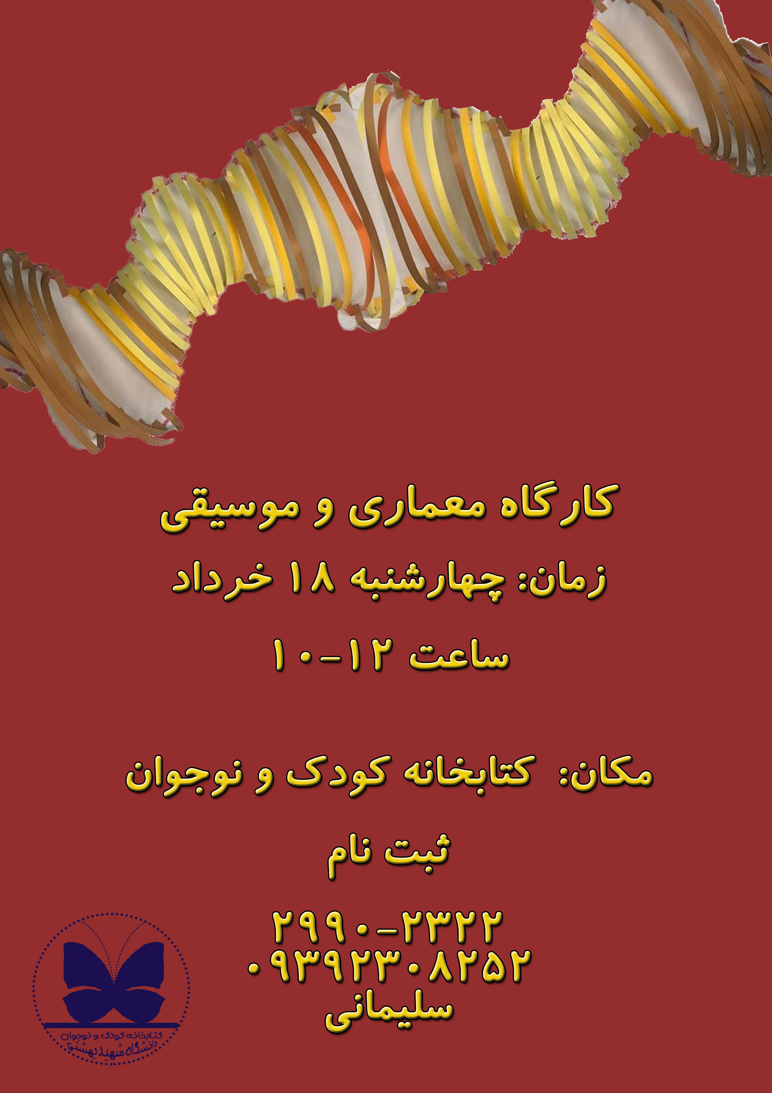 کتابخانه کودک و نوجوان در نظر دارد کارگاهی تحت عنوان معماری و موسیقی در محیط کتابخانه مرکزی، مرکز اسناد و موزه برگزار کند.