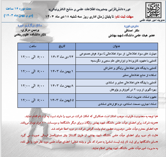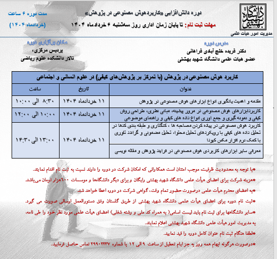 لغو برگزاری  دوره حضوری دانش‌افزایی «کاربرد هوش مصنوعی در فنی و مهندسی و علوم پایه»در تیرماه  1404