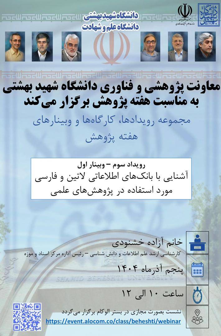 معاونت پژوهشی و فناوری دانشگاه شهید بهشتی برگزار می کند:
