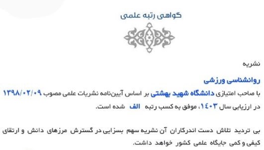 کسب رتبه "الف" نشریه روان شناسی ورزش در ارزیابی سال 1403