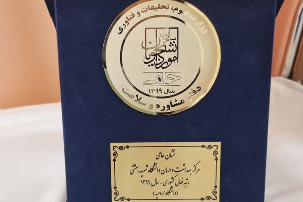 در دهمین گردهمایی روسای مراکز بهداشت و درمان دانشگاه‌ها و موسسات آموزش عالی کشور که 5 تیر به میزبانی دانشگاه ارومیه برگزار شد، در بخش تقدیر از مراکز ساعی و پرتلاش، اداره بهداشت و درمان دانشگاه شهید بهشتی موفق به کسب عنوان «مرکزبهداشت و درمان فعال کشوری در ارزیابی عملکرد سال 1399» و دریافت لوح تقدیر از سوی معاون وزیر و رئیس سازمان امور دانشجویان و مدیر کل دفتر سلامت شد.