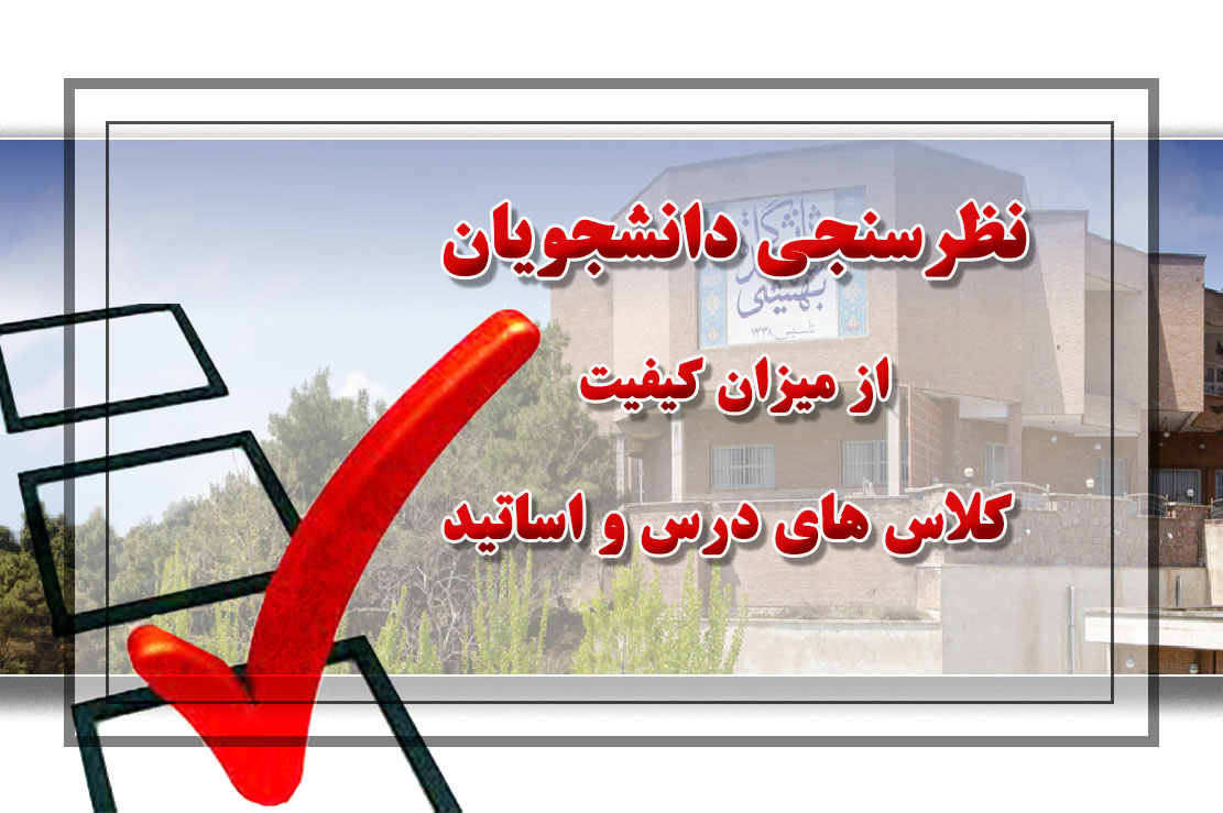 مهلت انجام نظرسنجي دانشجويان از تدريس اساتيد در سامانه ي گلستان, از پنجشنبه مورخ 1400/2/30 لغايت دوشنبه 1400/3/17 مي باشد. لازم به ذکر است رويت نمرات ترم جاري و انتخاب واحد ترم بعد, منوط به تکميل فرم نظرسنجي دروس ترم جاري مي باشد. بديهي است مسئوليت عدم  انجام نظرسنجي بر عهده ي دانشجو خواهد بود.