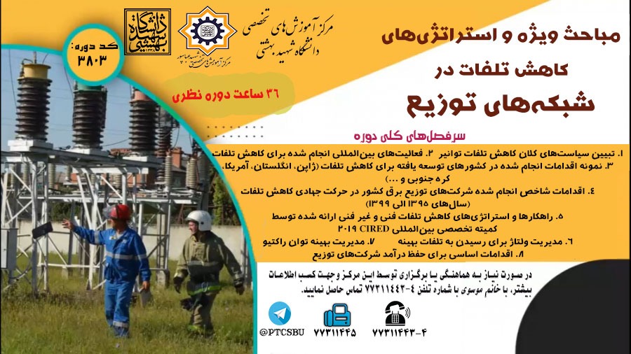 صفحه اصلی 🔺 دوره مباحث ویژه و استراتژی های کاهش تلفات در شبکه های توزیع 🔻 2054 بازدید print share دوره" مباحث ویژه و استراتژی های کاهش تلفات در شبکه های توزیع " توسط مرکز آموزشهای تخصصی پردیس فنی...