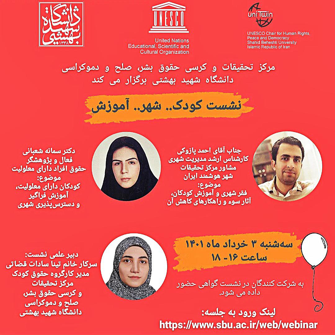 صفحه اصلی اکران و بررسی مستند اون شب که بارون اومد 11453 بازدید print share مرکز تحقیقات و کرسی حقوق بشر، صلح و دموکراسی یونسکو دانشگاه شهیدبهشتی، موسسه فرهنگی هنری حقوق و هنر، انجمن حقوق شناسی و...