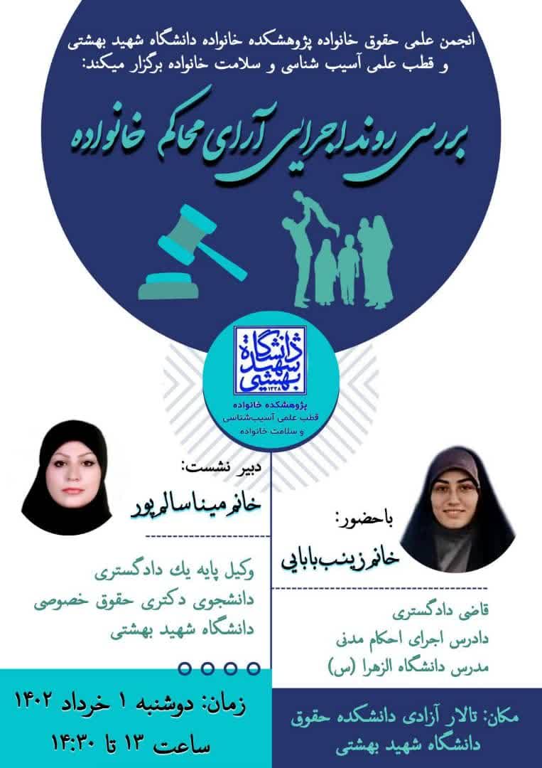 صفحه اصلی انجمن های علمی حقوق خانواده دانشگاه شهیدبهشتی و فقه و مبانی حقوق اسلامی دانشگاه تهران، به مناسبت هفته پژوهش برگزار میکنند: تحلیل فقهی، حقوقی و جرم شناختی سقط جنین ناشی از تجاوز 1473...